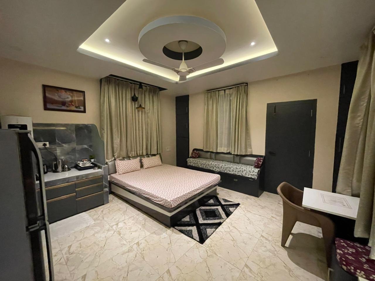 - Amenities: Air Conditioning, Bathroom Essentials, Bedroom Comforts, Flatscreen TV, Refrigrator, WiFi